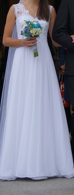 SPRZEDAM SUKNIĘ ŚLUBNĄ, DELIKATNĄ, SKROMNĄSuknie ślubne » Małopolskie » KAMIENICA
