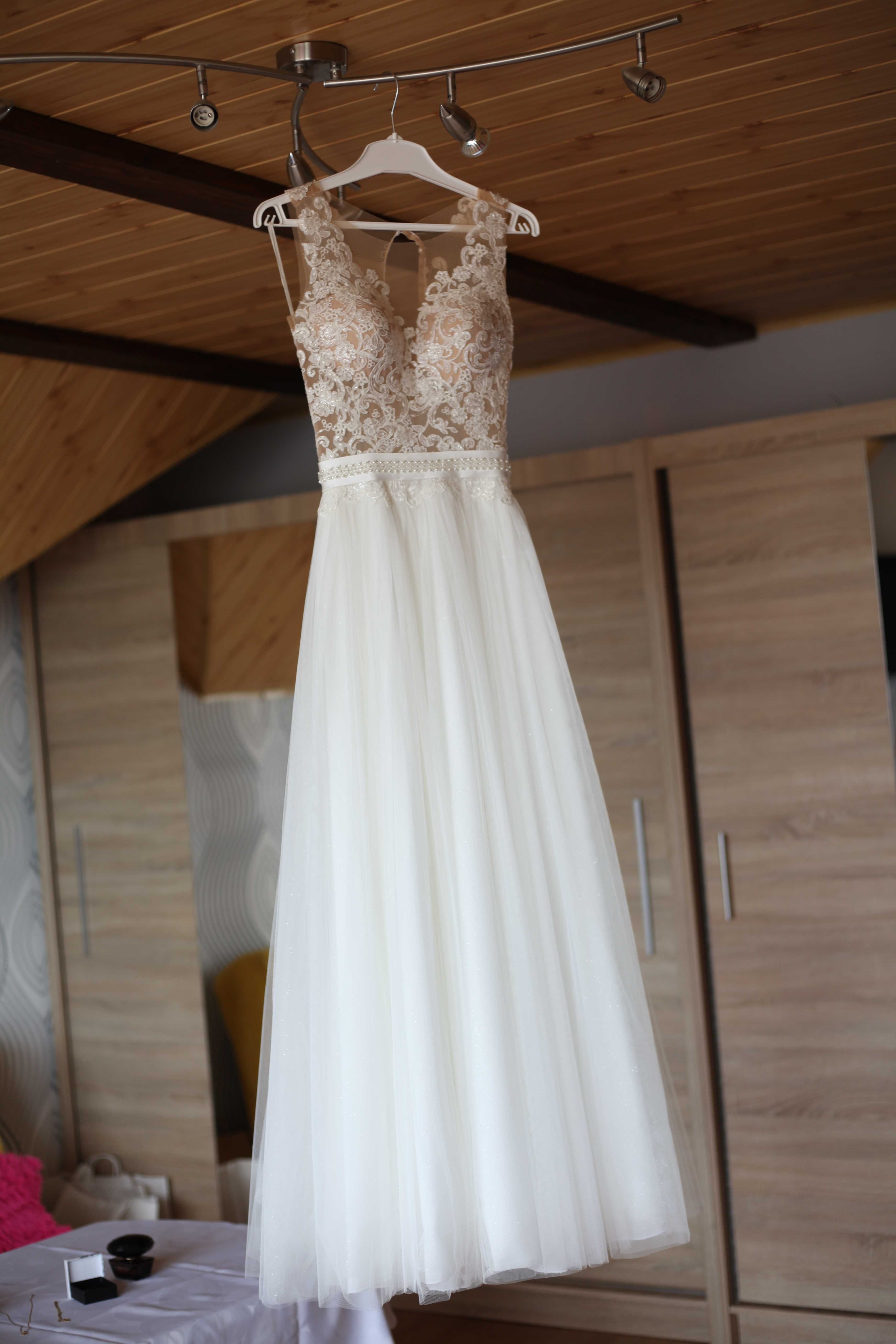 Sprzedam suknię ślubną r.S/XS w stanie idealnymSuknie ślubne » Śląskie » Pszczyna