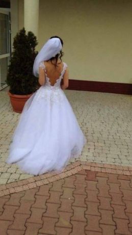 Suknia koronkowo-tiulowa w rozmiarze 36Suknie ślubne » Dolnośląskie » Złotoryja (okolice Legnicy)