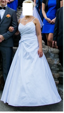 Sprzedam suknie ślubna w kształcie litery A. Dzięki temu ze jest wiązana z tylu będzie dobra także dla kobiet z dużym biustem a jej kształt optyczniecwyuza sylwetkę. Suknia dla kobiet obwysokosco 155-165. Suknia jest na kole ( ale nie musi) dodatkowo w cenie jest tez bolerko. Posiada delikatne zdobienia i marszczeni. Założona dwa razy i oddana do czyszczenia czeka na nowa właścicielkę