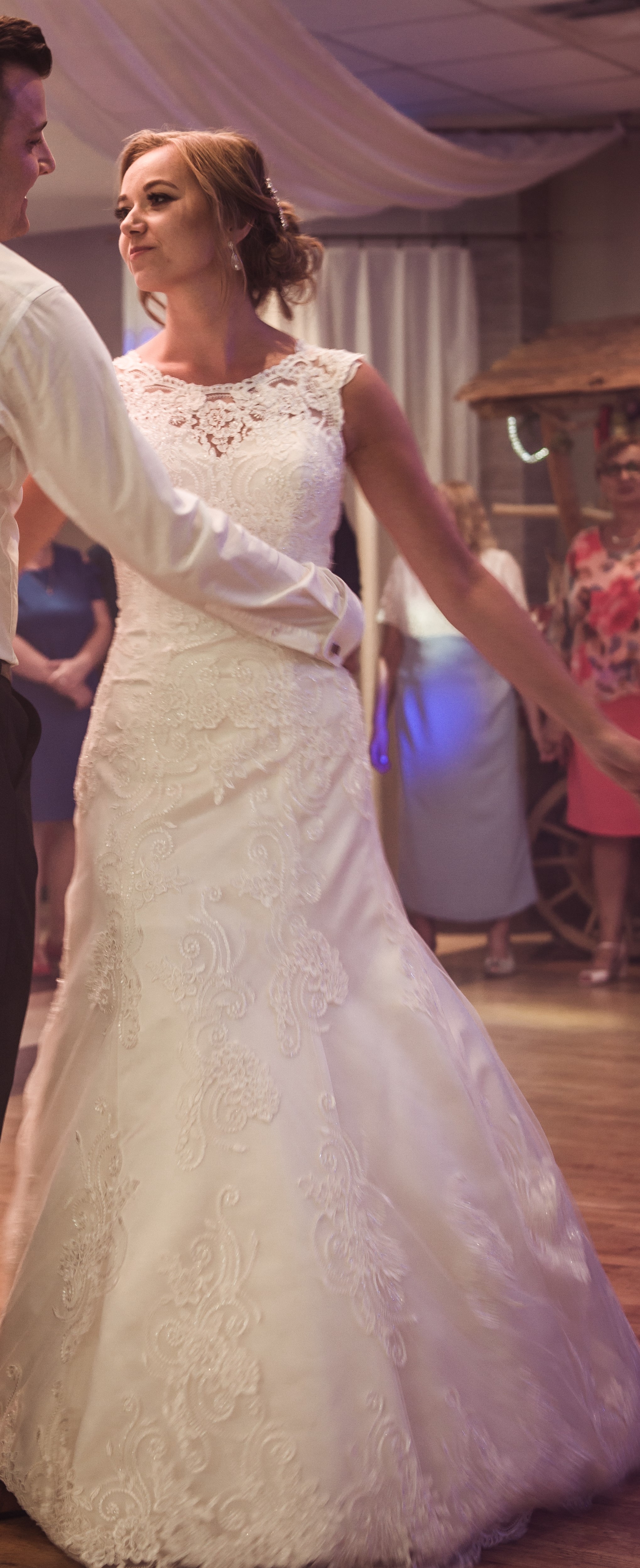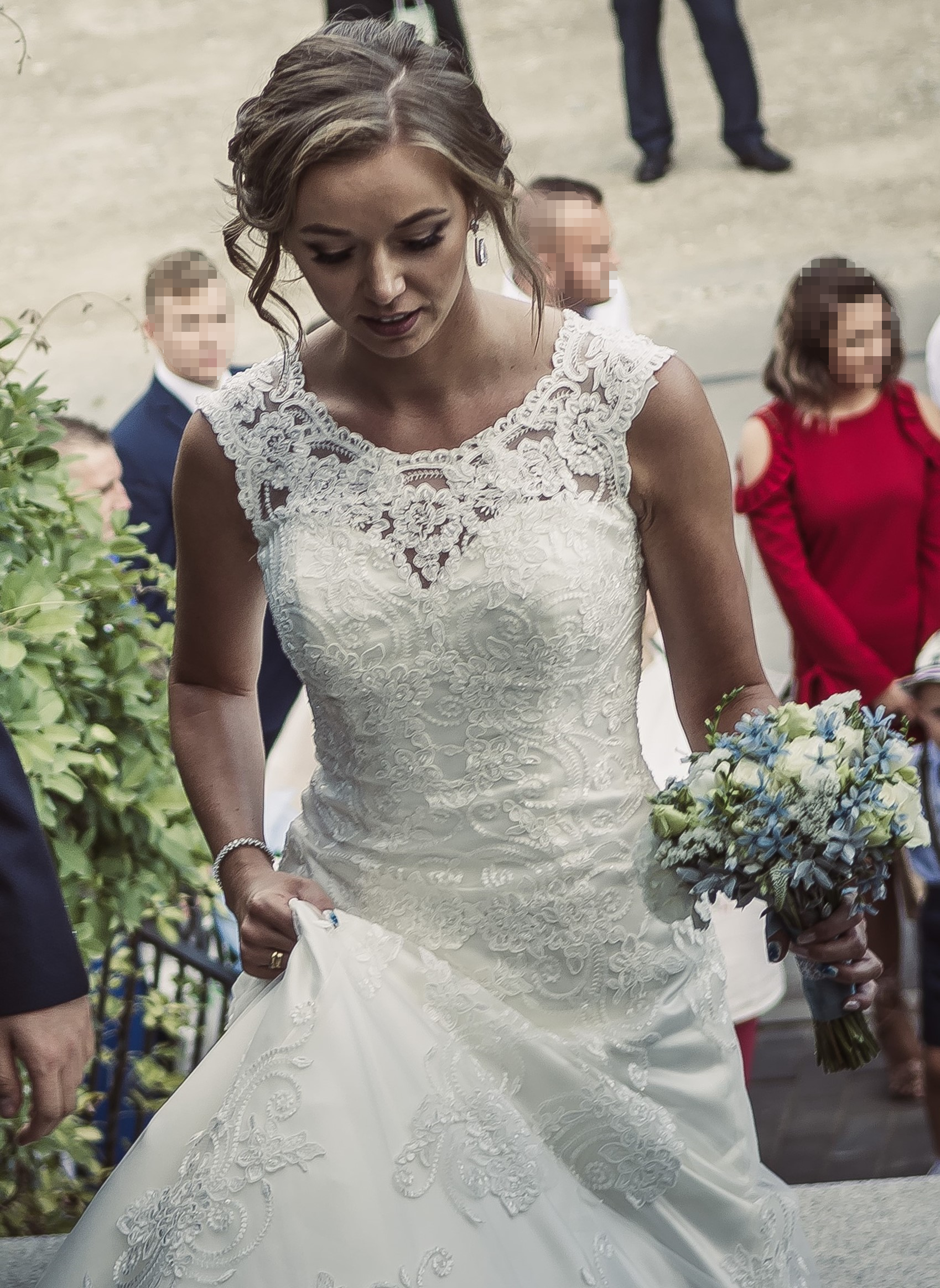 Sprzedam piękną, koronkową suknię ślubną zakupioną w salonie sukien ślubnych we Wrocławiu z kolekcji Annais Bridal. Suknia w kształcie litery A, dopasowana pięknie podkreśla figurę, rozmiar 36. Posiada koło oraz podpinany tren. Góra sukni posiada usztywniane miseczki. Wygodna, bardzo ładnie się układa podczas chodzenia oraz w tańcu. Suknia na wzrost 170 cm + 7-9 cm na obcas. Suknia po praniu chemicznym. Możliwość przymiarki w Kamieńcu Ząbkowickim ( woj. dolnośląskie). Po więcej informacji zapraszam na priv, podeślę filmik:)