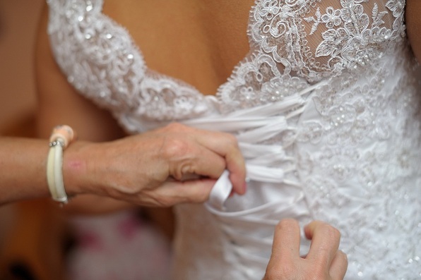Suknia szyta była na rozmiar 42 i wzrost 167 + obcas 7 cm (pasuje również na 40 i 44 ponieważ posiada wiązany z tyłu gorset)