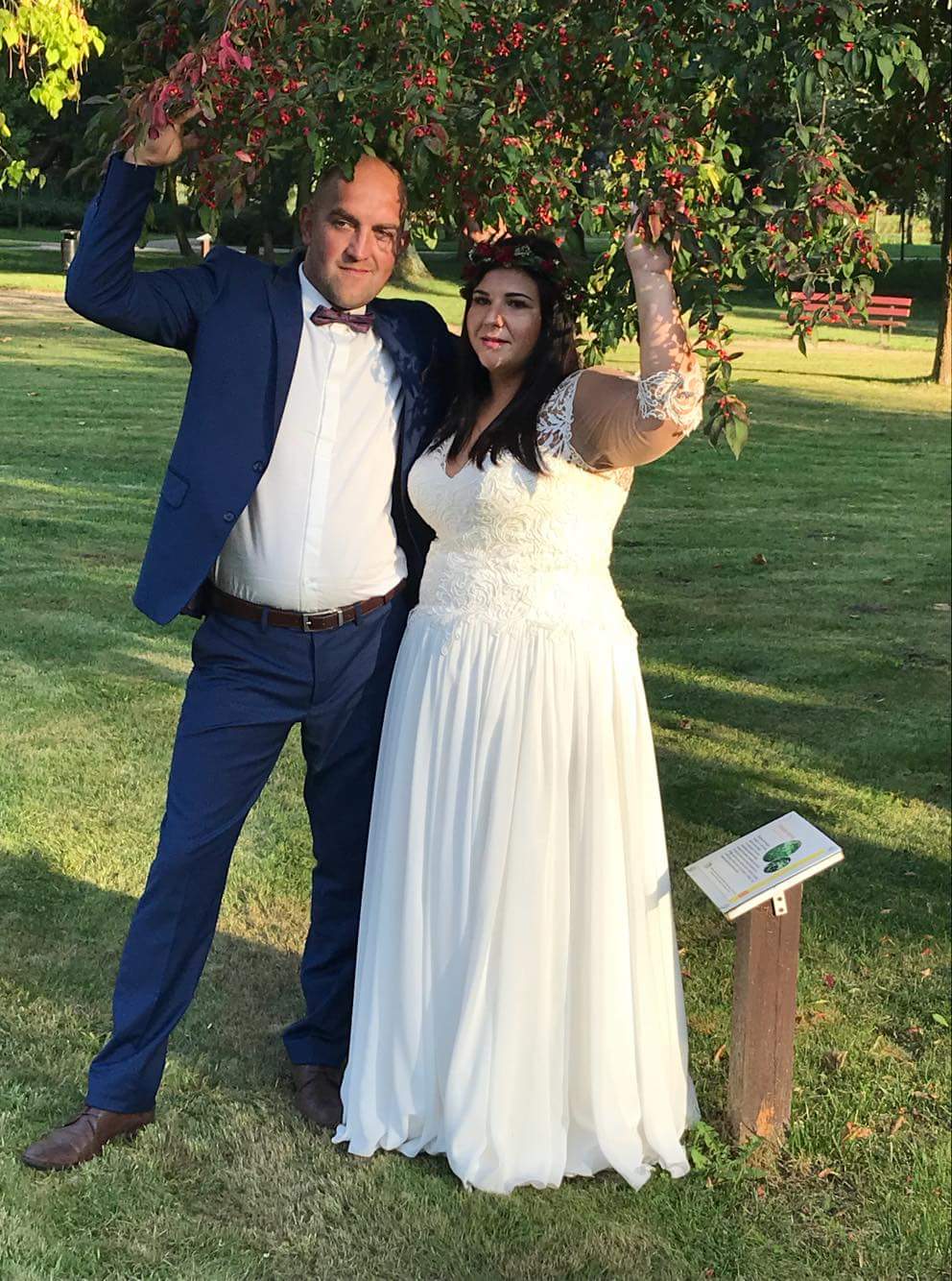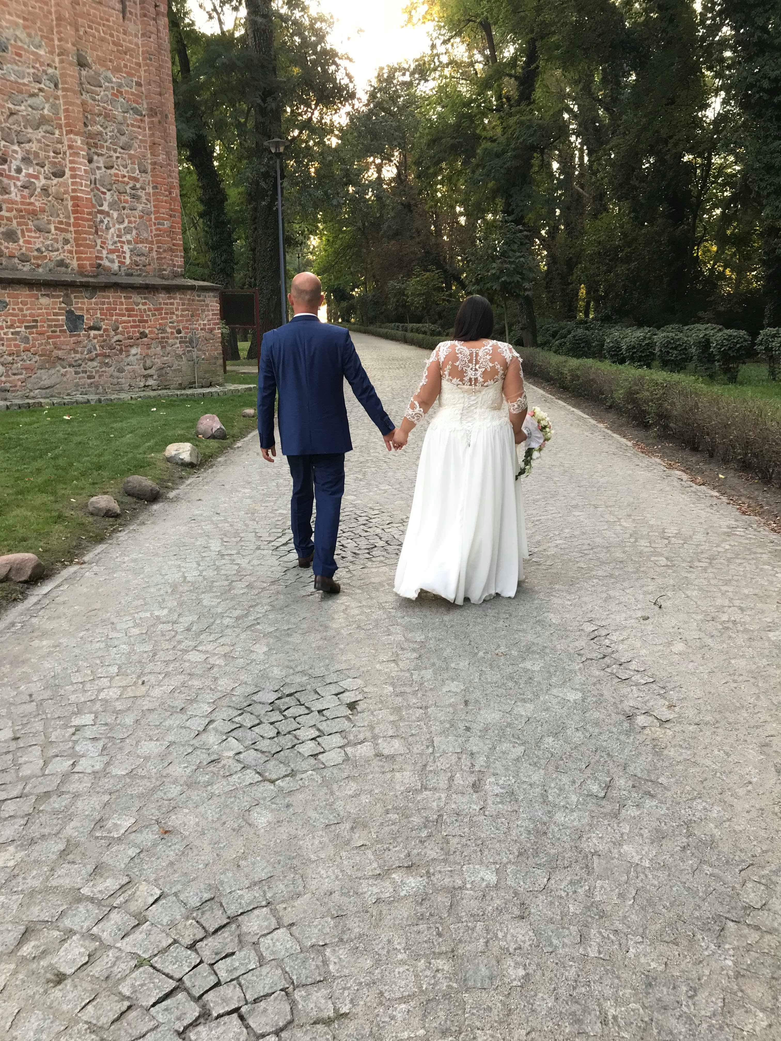 Witam mam do zaoferowania suknie ślubną na 165 cm wzrostu plus 7 cm obcas. Dół sukni wykonany z muslinu zaś Góra z gipiura. Gorset plus zapięcia na perełki. Cena do lekkiej negocjacji. Szczerze polecam. Sukienka robi wrażenie