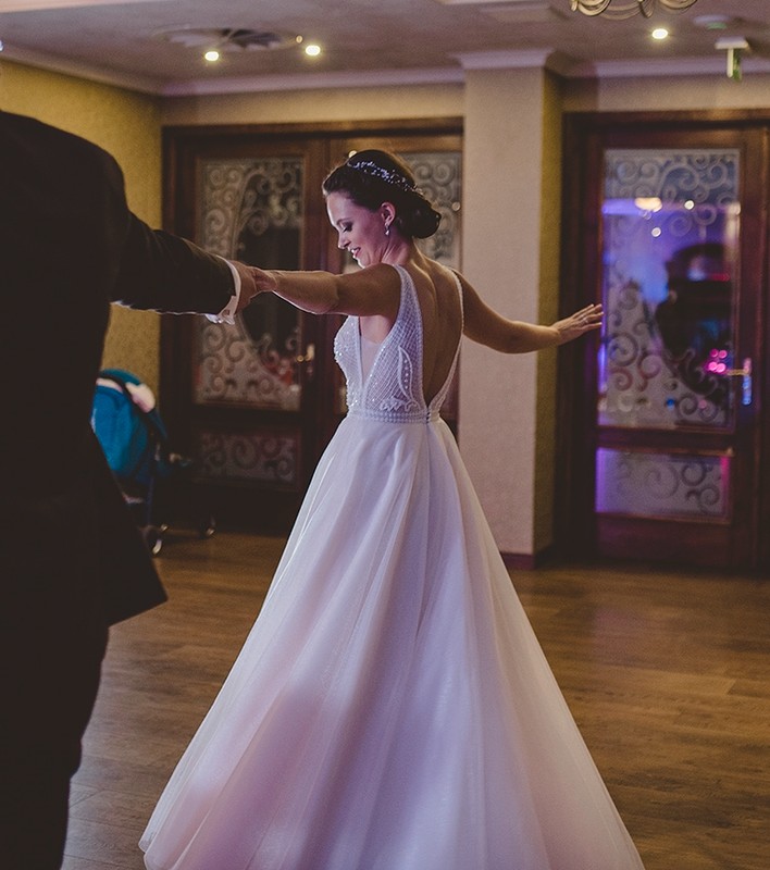 Szyta na miare, piękny kolor. Kupiona w salonie Sabe w Wieliczce za 5470zł. Rozmiar ok. 36, długość na wzrost 170 cm + 10 cm obcas