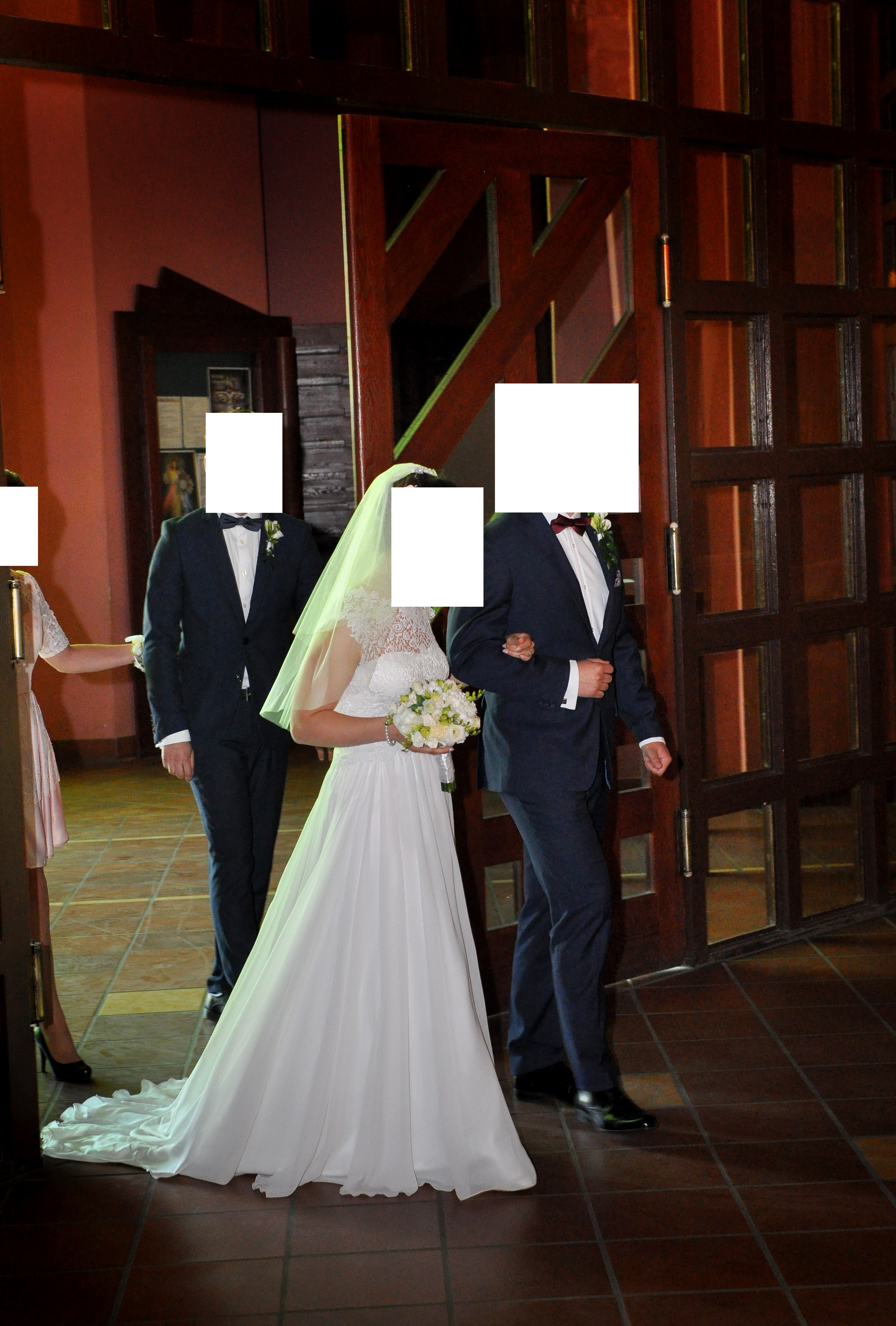 Suknia bardzo lekka i wygodna. Z tyłu mały guziczek co umożliwia przypięcie. Gratis welon do połowy pleców. Suknia po praniu chemicznym.Chętne osoby zapraszam do kontaktu.