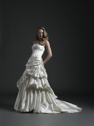 Suknia jest drapowana z trenem (do regulacji).