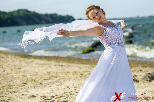 Dół sukni muślinowy gładki, bardzo lekki. W komplecie do sukienki posiadam halkę z małym kołem, które jest praktycznie niewidoczne, a ułatwia poruszanie się oraz krótki welon obszyty drobnymi koralikami.