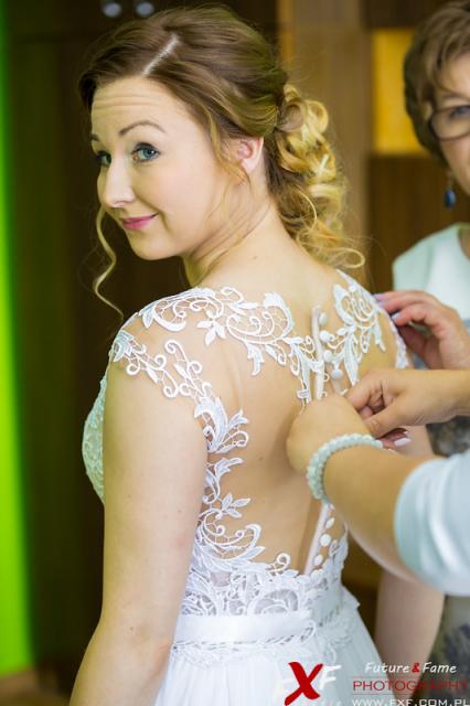 Suknia była szyta w tym roku, w salonie firmowym w Płocku - połączenie dwóch modeli z lekkimi modyfikacjami (góra sukienki to model Machiko -http://galasuknieslubne.pl/machiko.php, dół sukienki to model Selene - http://galasuknieslubne.pl/pl/dresses/selene/).