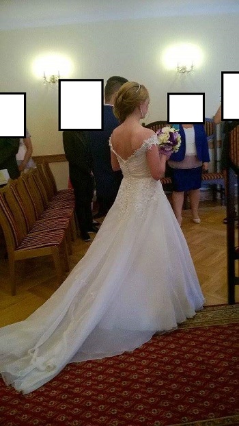 Witam mam do sprzedania przepiękną suknię ślubną zakupioną w Bydgoszczy w salonie. Suknia z kolekcji MGNY 39032 Madeline Grander New York. Suknia pasuje na kobietkę wzrostu 160 cm + 6 cm obcas, 32-36 małe. Do tego dorzucam koło. Welonu nie było ponieważ miałam diadem. Suknię sprzedaję za 1000 zł do lekkiej negocjacji a kosztowała mnie 1400 zł. Posiadam paragon. Suknia po czyszczeniu. Bardzo lekka i zwiewna. Serdecznie Zapraszam do przymiarki. Więcej zdjęć na PRIV. Bydgoszcz