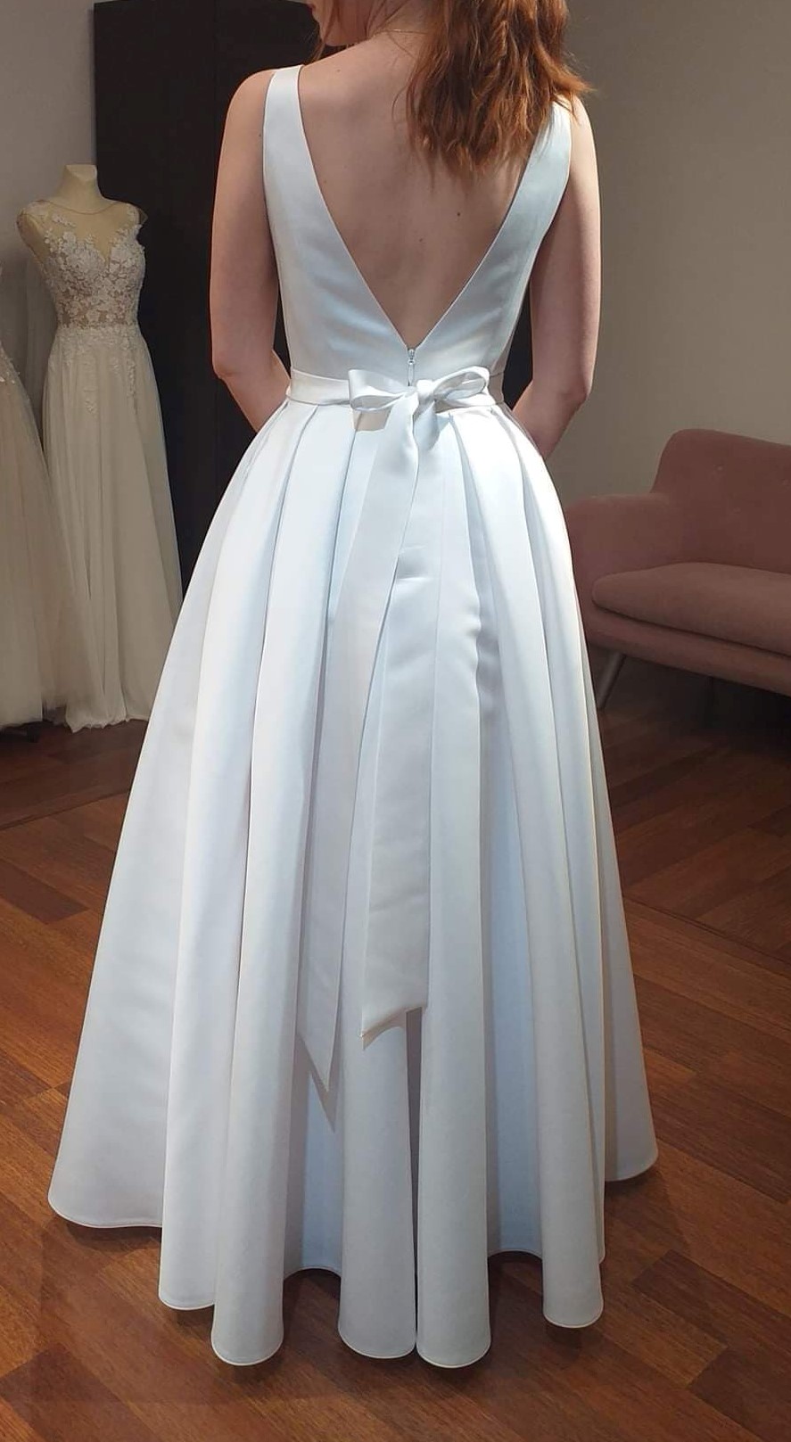 Sprzedam suknię ślubną jak na zdjęciu. Stan bardzo dobry, świeżo odebrana od profesjonalnego czyszczenia. Suknia została kupiona w salonie sukien ślubnych w kwietniu tego roku za 3800 zł. Ślicznie układa się podczas tańca i jest bardzo wygodna. Posiada dwie kieszenie (na biodrach), nieusztywnianą podszewkę, wypełniające poduszeczki na biust i ozdobny pasek.