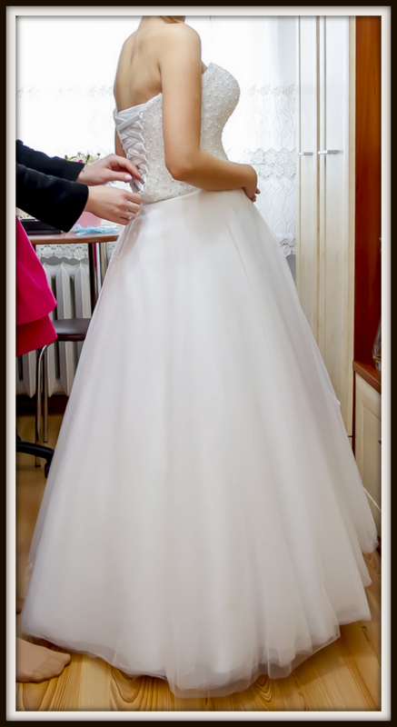 Suknia jest gorsetowa(regulacja sznurowaniem ), rozmiar od 34 do 38.