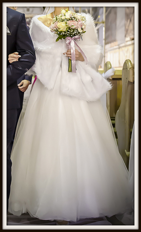 Do sukni dołączam gratis halkę i futerkowy szal widoczny na zdjęciu.