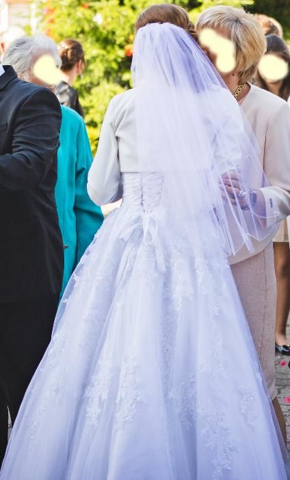 Rozmiar 34/40 Panna Młoda miała obcasy 5 cm przy wzroście 173 cm.