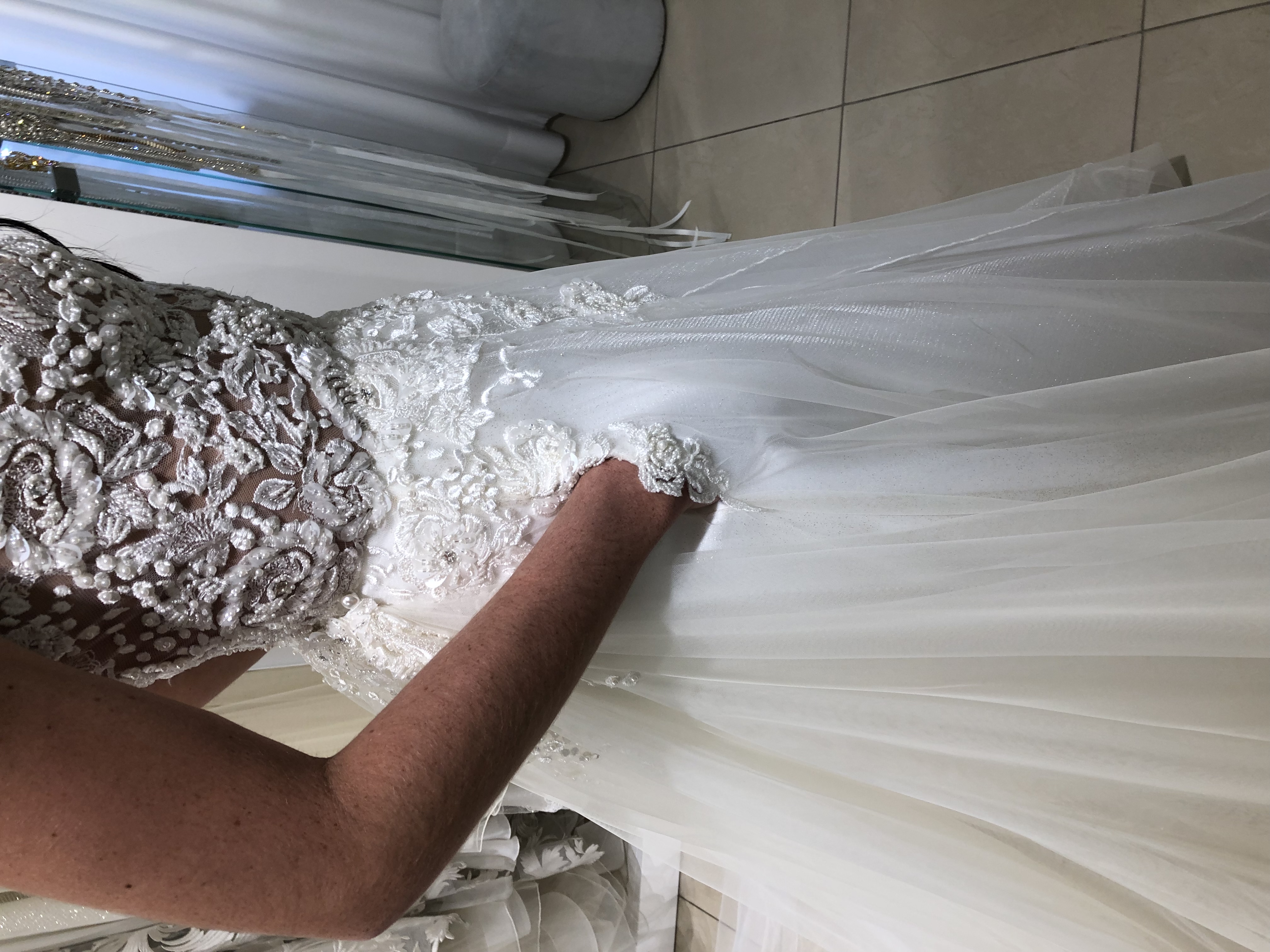 Dodatkowo sukienka posiada piękny długi tren (3 m) a także welon(3m) i UWAGA UWAGA. Sukienka ma kieszenie !! ( są głębokie i śmiało można trzymać szminkę bądź błyszczyk bez żadnych obaw , że wypadnie )