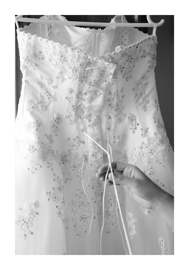- Gorset jest sznurowany z tyłu, co umożliwia dopasowanie do sylwetki, ozdobiony cyrkoniami opalizującymi;