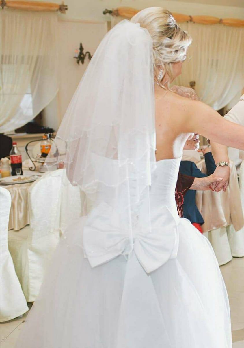 Suknia sprzedawana jest bez koła i welonu.