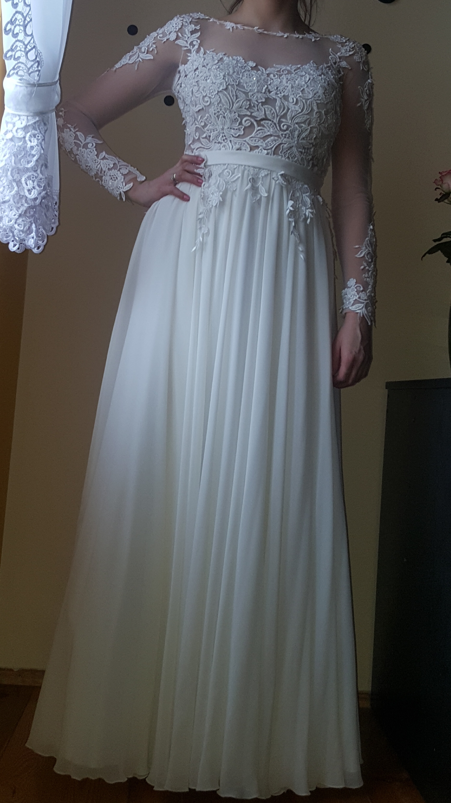 Suknia ślubna L/XL, ecru, koronka, długi rękawSuknie ślubne » Łódzkie » Klonowa