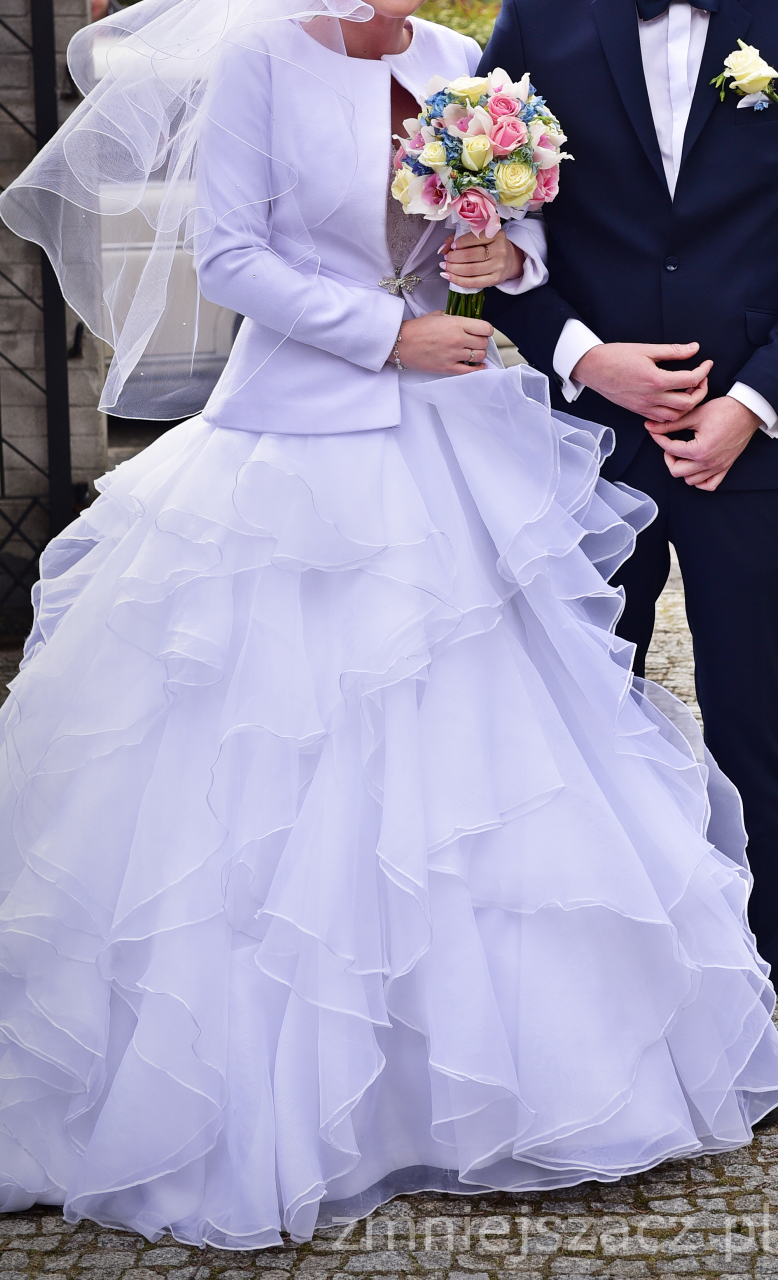 Witam, mam do sprzedania suknie ślubną Mori Lee (model 2805). Składa się z warstwowej spódnicy z organzy typu Princess oraz gorsetu haftowanego koronkami i kryształkami.