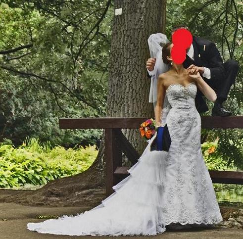 Jestem pierwszą właścicielką sukni, użytej raz na własnym weselu, niezniszczona, wyczyszczona.