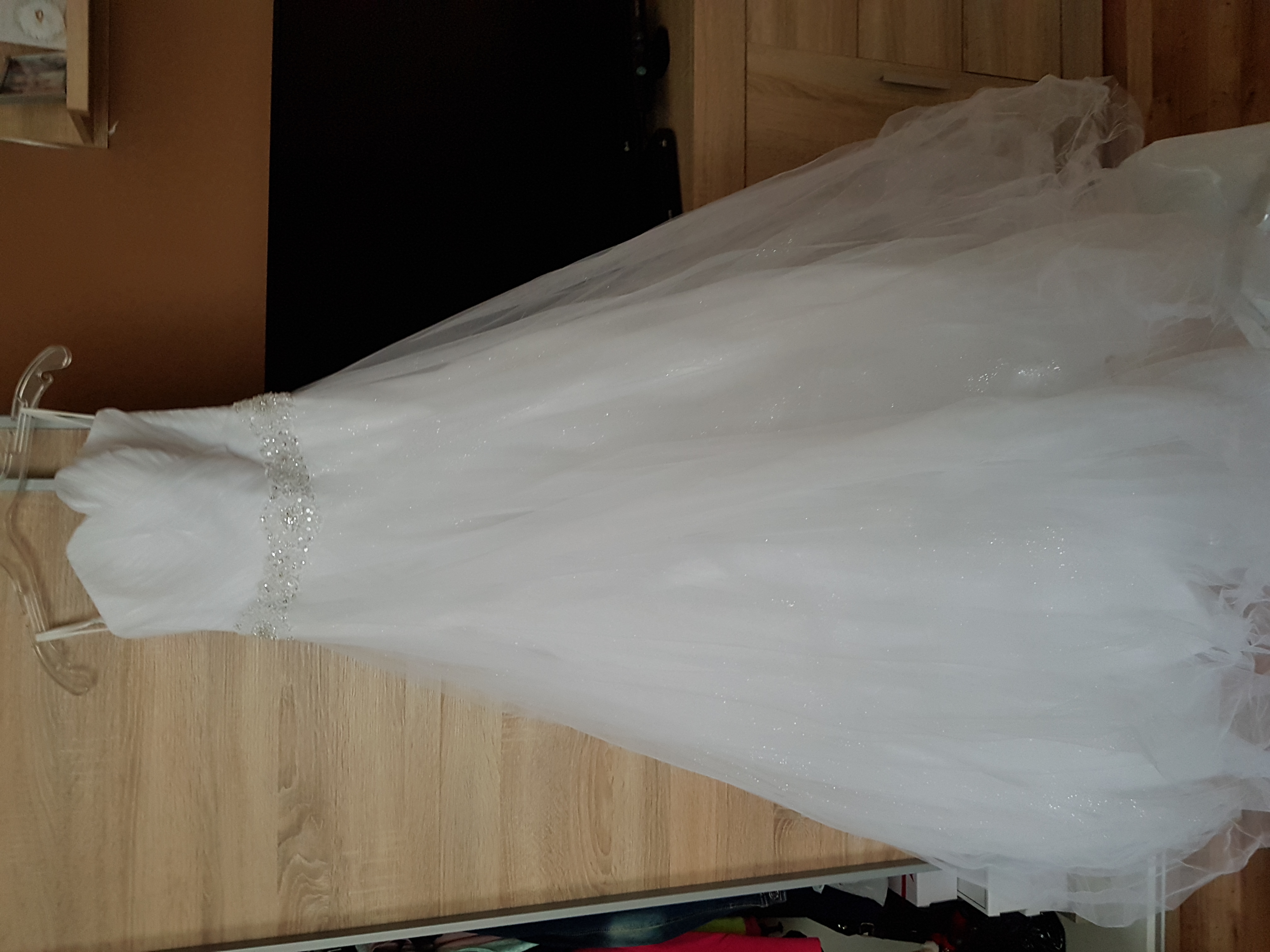 Nowa Suknia Ślubna Księżniczka wraz z kołem.Sukienka odebrana prosto z salonu Ariana przy ul.Jaracza.Nieuzywana gdyz plany sie zmieniły.Sukienka jest na 172 plus obcas rozmiar 38 ale gorset jest regulowany wiec bedzie na Panie od 36 do 40.Sukienka kosztowala 1800 zl.Tylko Odbior osobisty