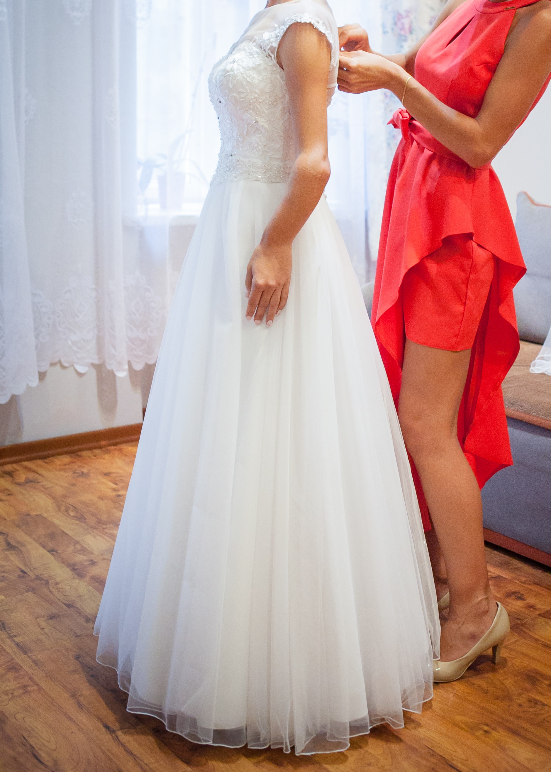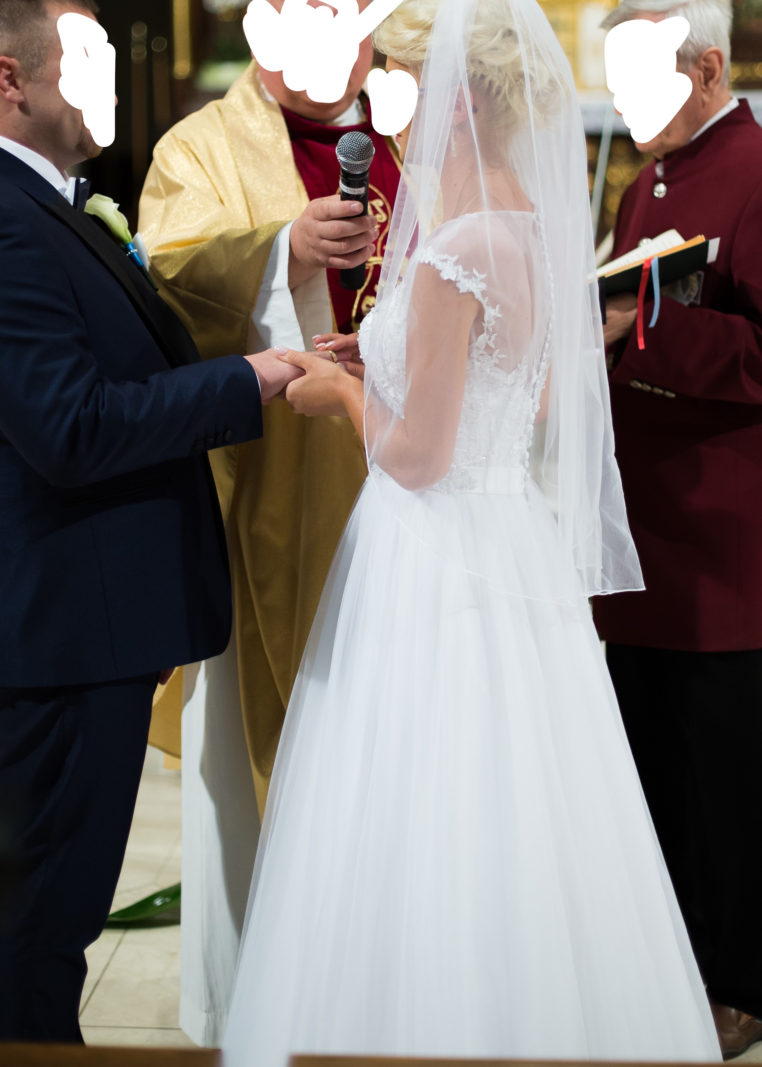Suknia śliczna prosta raz założona zaraz po ślubie wyprana w pralni chemicznej..Stan sukni idealny :) polecam gorąco do ogladania i kupowania :) Welon w gratis + buty rozmiar 40/41..