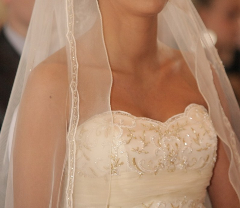 1. Oryginalny długi welon pięknie zakrywający ramiona w kościele,