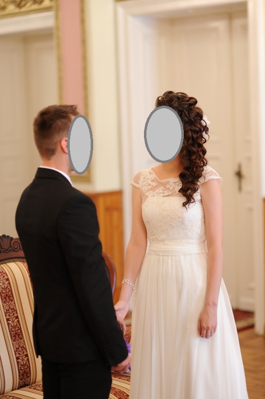 Suknia była dopasowywana do wzrostu 173cm- jest możliwe jej ewentualne skrócenia dlatego będzie też właściwa dla niższej Panny Młodej.
