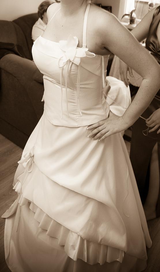 Gorset - biust: około 99cm, pod biustem: 80cm (gorset sznurowany regulowany, posiada dopinane ramiączka. Możliwa przymiarka w Lublinie mogę również dostarczyć gratiss suknie na terenie Lublina lub okolić Opola lub. Mogę również wysłać suknie kureirem koszt 18zł