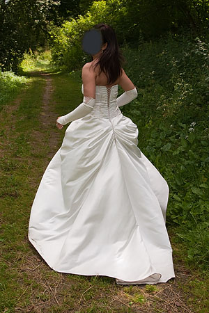 Sprzedam suknię slubną uszytą na zamowienie w Lublinie - w kolorze jasnym ecru, z krotkim podwiazywanym trenem, bardzo wygodna, szykowna a zarazem skromna.
