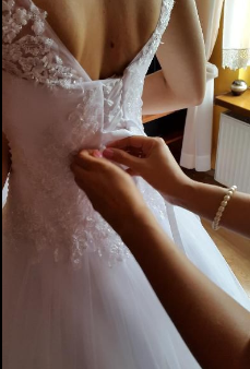 Suknia jest bardzo wygodna, nie krępuje ruchów, pięknie się układa. Cudnie wykończona.