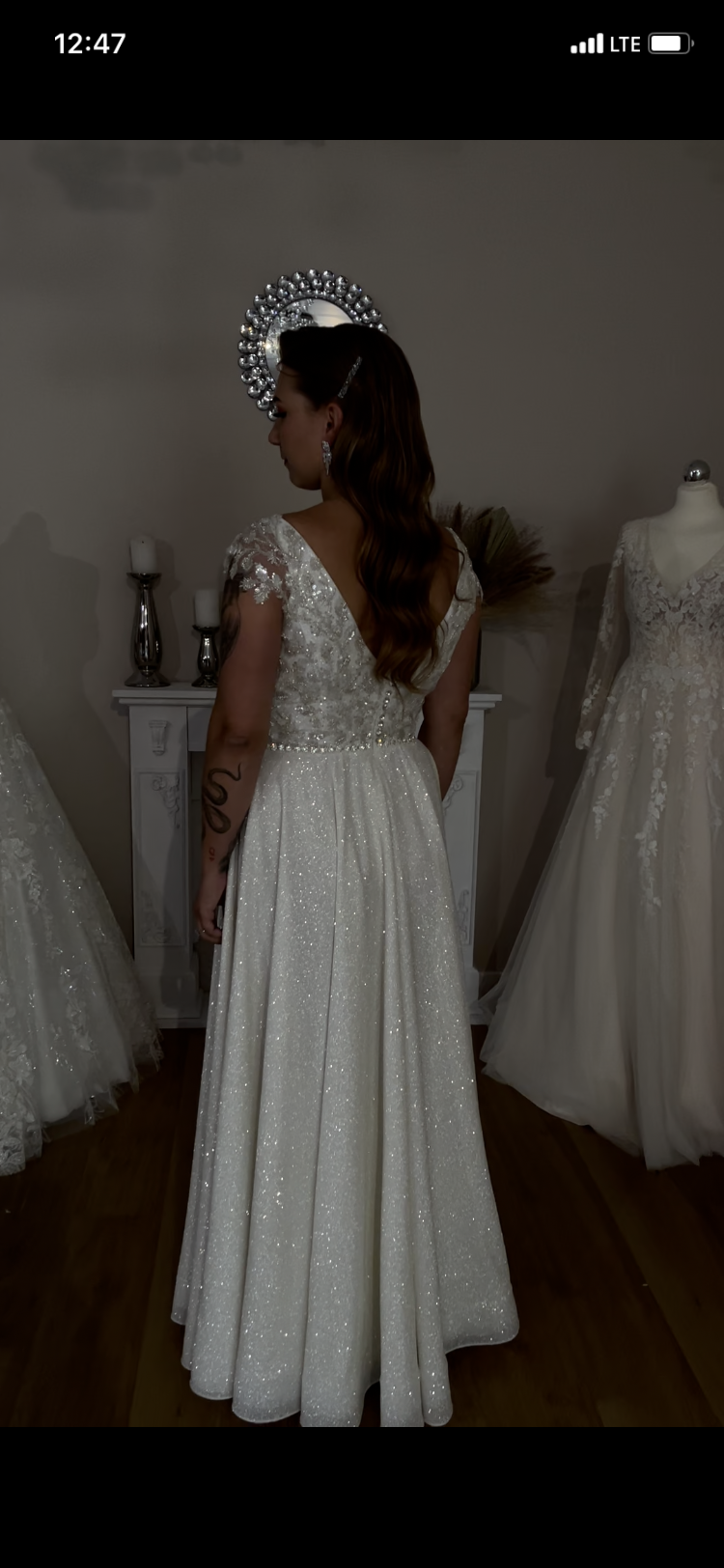 Rozmiar 38 ze względu na szersze ramiona wymiary mogą być minimalnie większe ???? suknia bardzo ładnie się błyszczy jest wygodna i piękna! ????❤️
