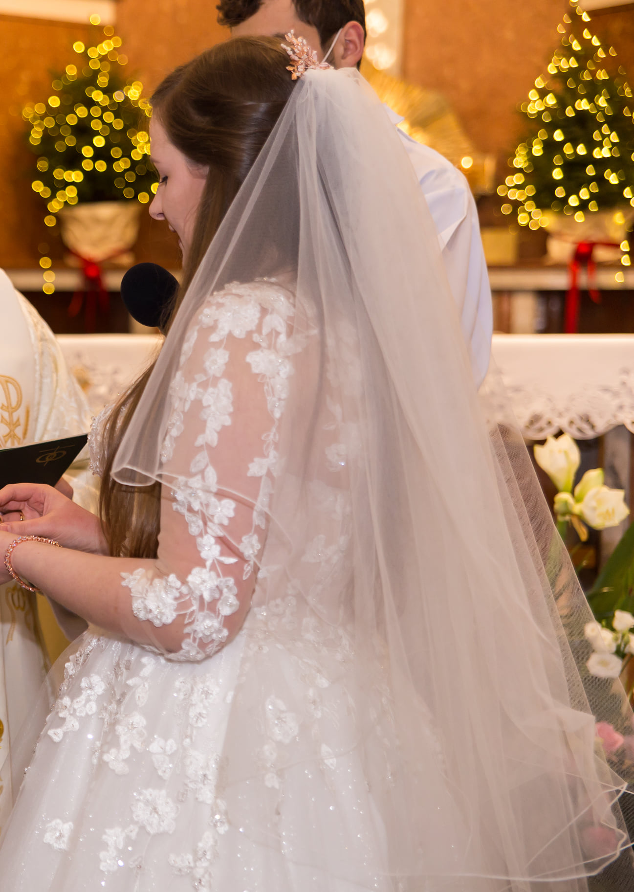Długa suknia ślubna Lovely pokryta koronką r. 40-44Suknie ślubne » Małopolskie » Kęty