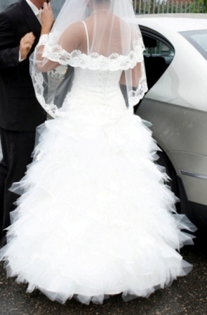 Cena: 2200 zł do negocjacji. (Cena w salonie: 3400 zł). Dodatkowo welon z haftem i halkę dołączam gratis. Zachęcam do obejrzenia i przymierzenia sukni, ponieważ na żywo wygląda jeszcze piękniej!