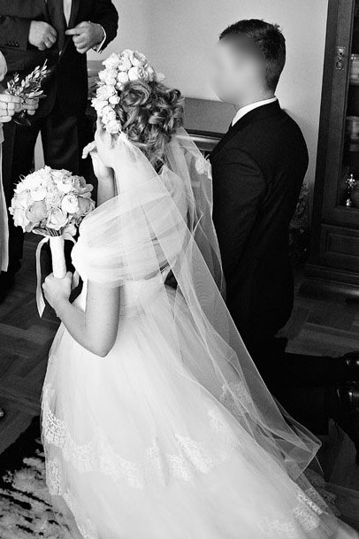 welon w postaci dwóch tiulowych szarf (u mnie dopinany był do wianka)