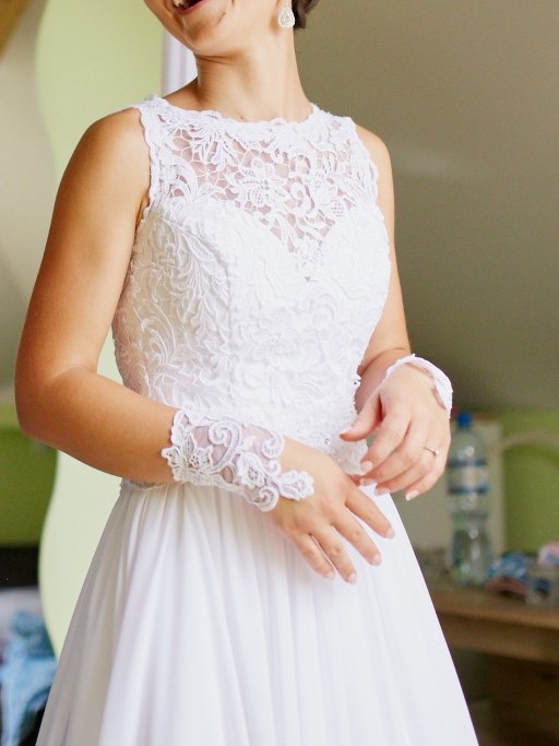 - zdjęcia bez żadnego retuszu, sesja wykonana jest po weselu, suknia jak widać bez uszkodzeń.
