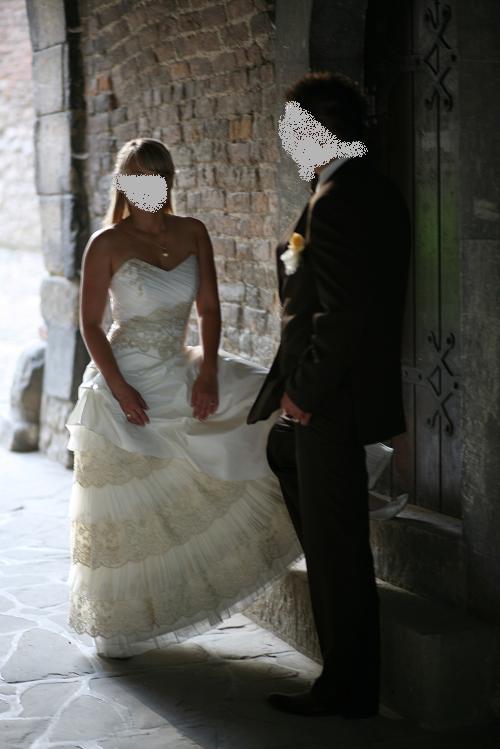 Sprzedam piękną suknię ślubną w stylu hiszpańskim w rozmiarze 36. Kolor: śmietankowy (ecru) ze złotem. Dodatkowo gratis dodaję buty (kosztowały 160 zł) w tym samym kolorze w rozmiarze 36 oraz mini bolerko wykonane z koronki (kosztowało 250 zł). Suknia będzie pasować na dziewczynę w rozmiarze 36. Moje wymiary: