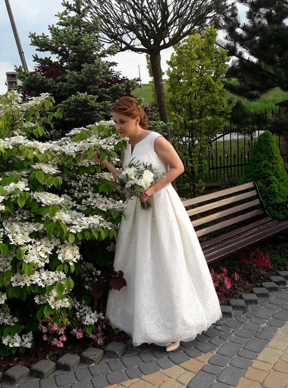 Mam do sprzedania suknię ślubną zakupiona w Salonie Gracja w Krakowie. Szyta na miarę na wzrost 162cm. Rozmiar 36-38. Suknia w kolorze śmietankowym, dół na kole. Suknia ma kieszenie.