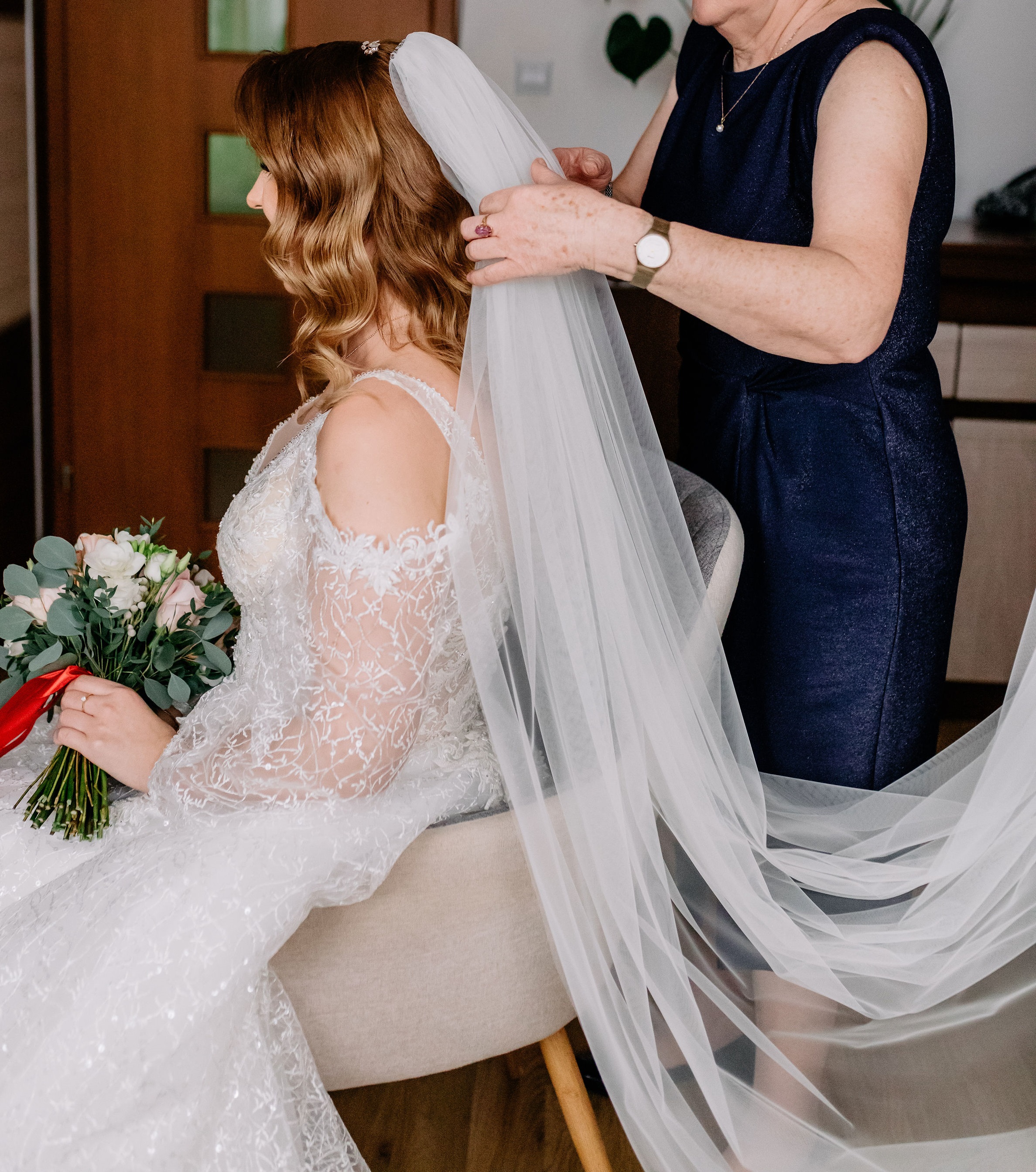 Cena nowej sukni i welonu w salonie: 4800 zł (posiadam paragon).