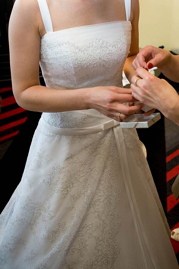piękna sukienka kupiona w markowym salonie na wymiar. Suknia jest w kolorze białym z koronką ze srebrną nitką oraz niewielkim, upinanym trenem. Sukienka jest po czyszczeniu. Rozmiar 36/38 a wysokość 168 +obcas.