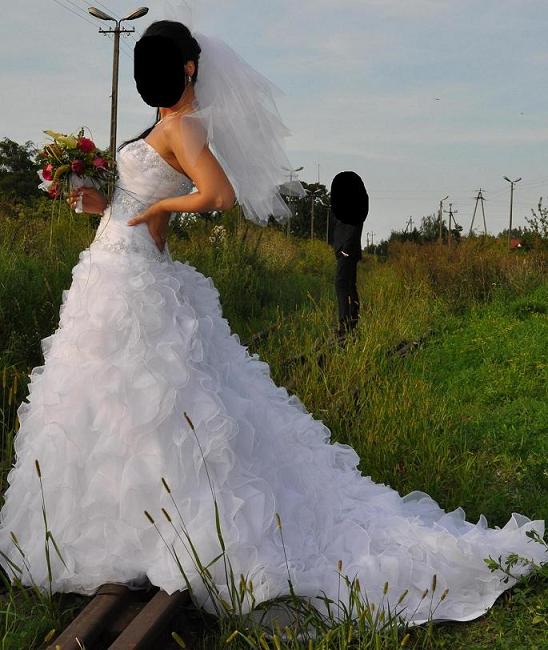 Witam. Mam do sprzedania piękną, białą suknię ślubną w rozmiarze 38.