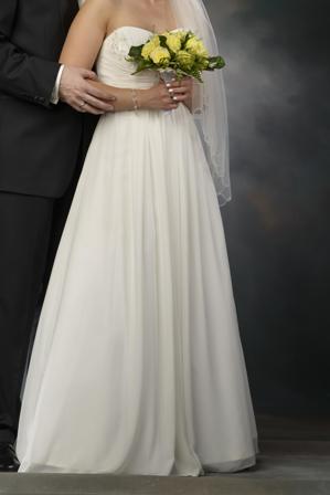 Suknia bardzo lekka, bez koła i trenu. Pięknie układa się w tańcu.