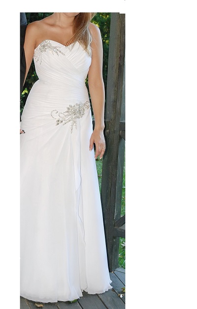 Rozmiar sukni 36-38. Suknia jest biała, jednoczęściowa sznurowana na plecach co pozwala na dopasowanie do obwodu talii. Na wzrost ok. 160cm + 5 cm obcas.