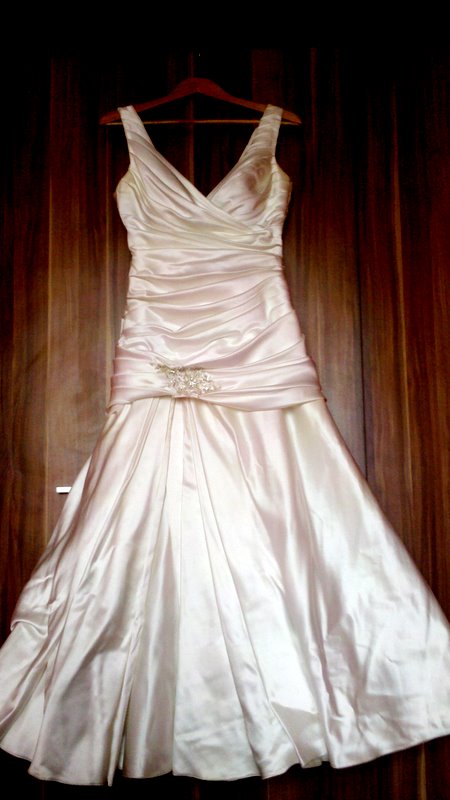 Suknia szyta w salonie w Chrzanowie na zamówienie tuż przed ślubem, który miał miejsce w sierpniu 2011. Ma ona kolor perłowy. Posiada dość duży dekolt eksponujący piersi. Z tyłu jest wycięta w V. Rozmiar duże 38, szyta na wzrost 1,56cm plus obcas. Sukienka bardzo wygodna, maskująca brzuszek a uwydatniająca piersi. Zapłaciłam za nią 1900zł. Do ceny 750zł proszę doliczyć cenę prania w pralni gdyż nie była prana (ok 100zł). W razie pytań proszę dzwonić.Odbiór osobisty. Gorąco polecam! tel 692497348, adres: 32-540 Trzebinia