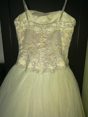 Sprzedam TANIO piękną suknię ślubną Górę sukni stanowi gorset idealnie podkreślającym kobiece kształty. Suknia jest pokryta delikatną, romantyczną koronką. Prezentuje się bardzo romantycznie i kobieco. Z tyłu zapinana na zamek, który zakryty jest bardzo efektownymi, delikatnymi guziczkami. Jest wygodna, nie krępuje ruchów, rewelacyjnie prezentuje się w tańcu.Suknia po czyszczeniu (używana raz na przyjęciu ślubnym oraz raz na zdjęciach w plenerze).