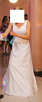 Suknia jest prosta, ale elegancka, bardzo lekka i niesamowicie wygodna, przetańczyłam w niej całe wesele. Materiał się nie mnie.