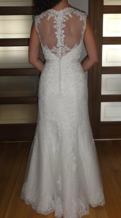 Przód: doskonale podkreśla kobiecą figurę - „dekolt Królowej Anny”, w talii wszyty ozdobny paseczek z kryształkami, dopasowana i delikatna syrenka.