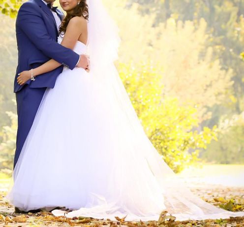 Do sprzedania mam śliczną suknię ślubną princeska model z 2015 roku. Rozmiar oryginalny 36 ( Wejdzie w nią zarówno większe 36 ).Suknia regulowana sznurowanym gorsetem . Suknie można skrócić ja mam 165 i miałam buty na prawie 7-8 cm szpilce suknia była prawie do ziemi. Do sukni dołączam tren, welon, koło i szal zakrywający ramiona oraz bolerko z futerka. Suknia bardzo wygodna ,godna polecenia na wyjątkową okazję.Więcej informacji można uzyskać po nr. telefonu 506998598 .