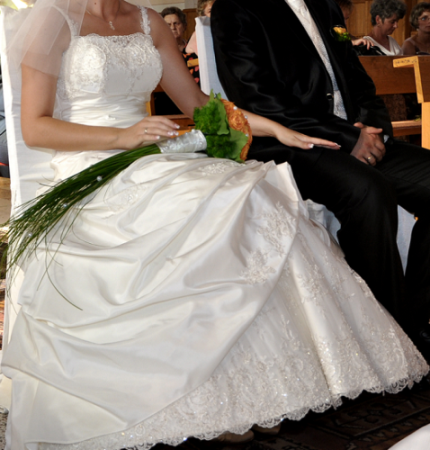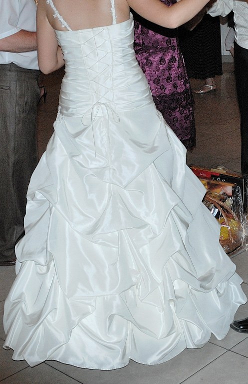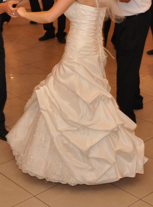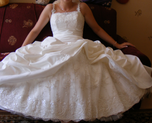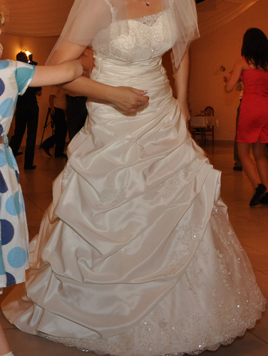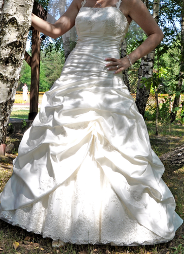 Witam ! Mam do sprzedania Suknię Ślubną w kolorze ecru. Suknia Ślubna zakupiona w salonie Elle z kolekcji "Żanet" Nazwa sukni to hawanna. Suknie szyta na miarę, rozmiar 38/40, wzrost około 168+obcas. Założona tylko raz 17,07,2010r, po ślubie wyczyszczona w pralni chemicznej. Suknia jednoczęściowa,sznurowana dzięki temu dopasuje się idealnie do każdej figury, góra zdobiona koronką i mieniącymi się koralikami. Tył delikatnie marszczony, z przodu suknia ma widoczną koronkę, która dodaje niesamowitego uroku. Łatwo dopasowuje się do figury, lekka, nie zsuwa się, regulowana z tyłu wiązaniem. Możliwość odczepienia ramiączek.Do sukni dołączona jest halka na kole.