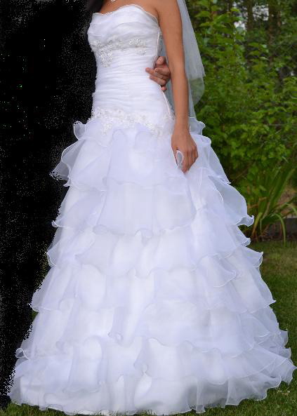SPRZEDAM PIĘKNĄ SUKNIĘ ŚLUBNĄ, KOLOR ŚNIEŻNA BIEL, WIĄZANA Z TYŁU, POSIADA PODPINANY TREN O DŁUGOŚCI OKOŁO 1 METRA, ODPOWIEDNIA NA WZROST 165 CM PLUS OBCAS 7 CM, PIĘKNIE PREZENTUJE SIĘ NA ZDJĘCIACH, POSIADA DROBNE KRYSZTAŁKI, CENA W SALONIE TO 2500, ZOSTAŁA WYPRANA CHEMICZNIE - NIE POSIADA USZKODZEŃ, KAŻDA PANI MŁODA BĘDZIE CZUŁA SIĘ W NIEJ WYJĄTKOWO, SUKNIA WYGLĄDA BARDZO OKAZALE. POLECAM
