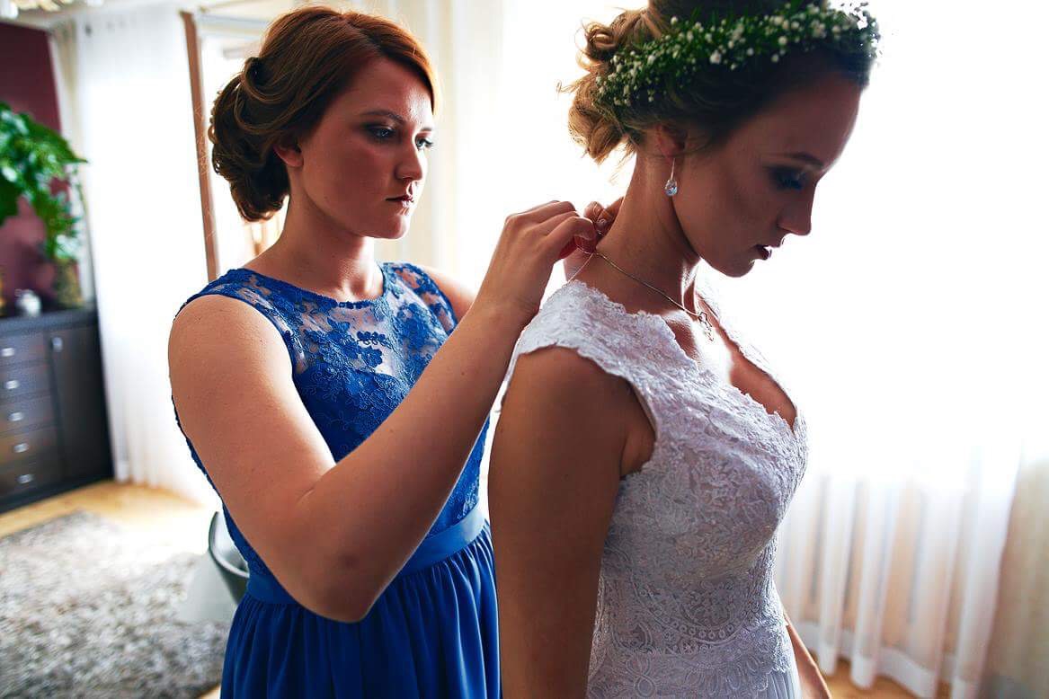 Suknia jest minimalistyczna - zwiewny, lejący dół i dopasowana, dopracowana w każdym szczególe, koronkowa góra.